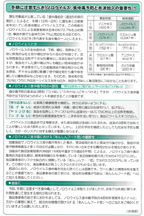 コロナウイルスとは違って、アルコールでは感染力が無くなりません。そのため、調理従事者の認識不足から、大規模な食中毒を起こしてしまう可能性があります。 ノロウイルスは、エンベーロープ(外套膜)を持たないウイルスです。インフルエンザウイルスやコロナウイルスは、この膜を持っているのでアルコールでこの膜を変性してしまい感染力を奪うことができます。