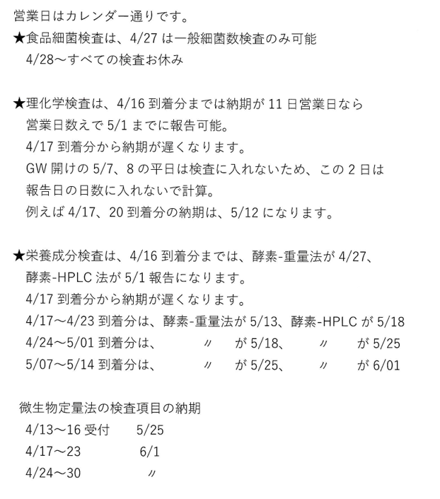ゴールデンウィークの営業日等についてお知らせ申し上げます。